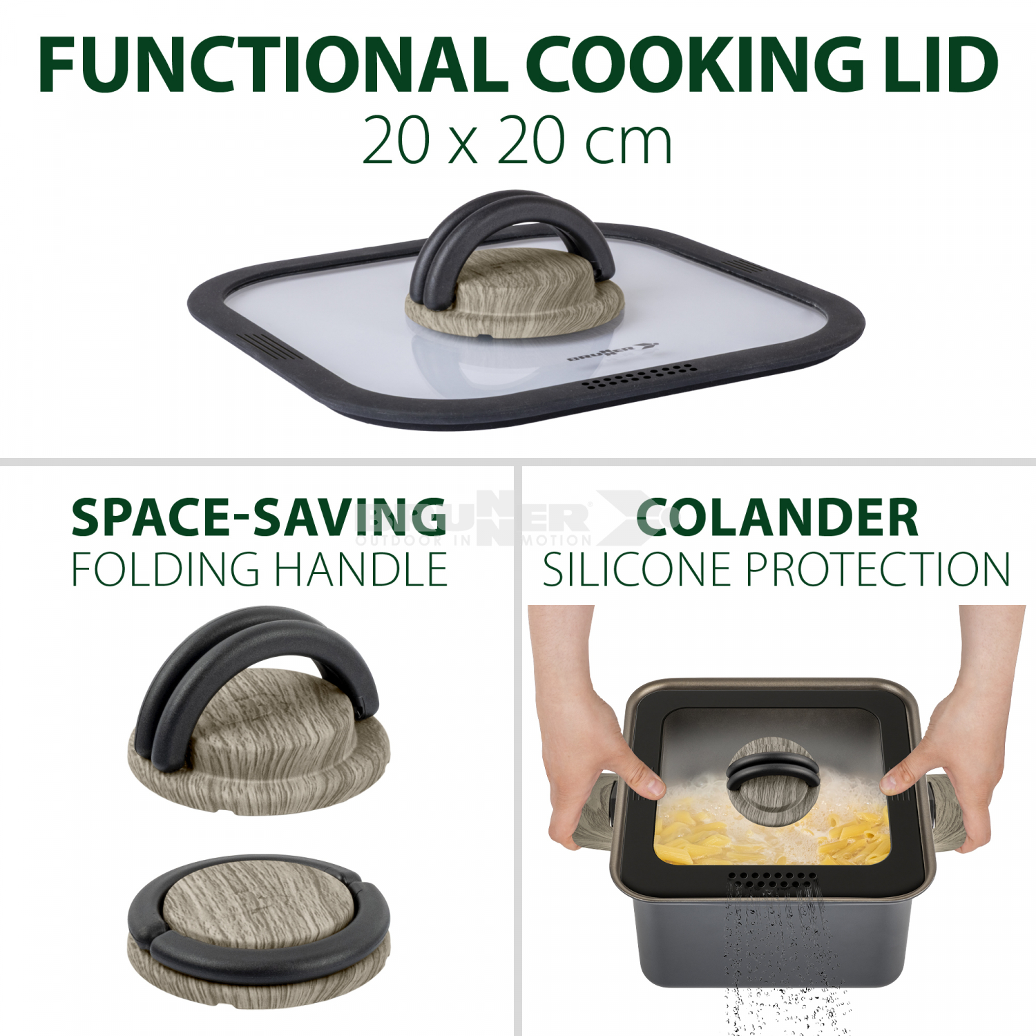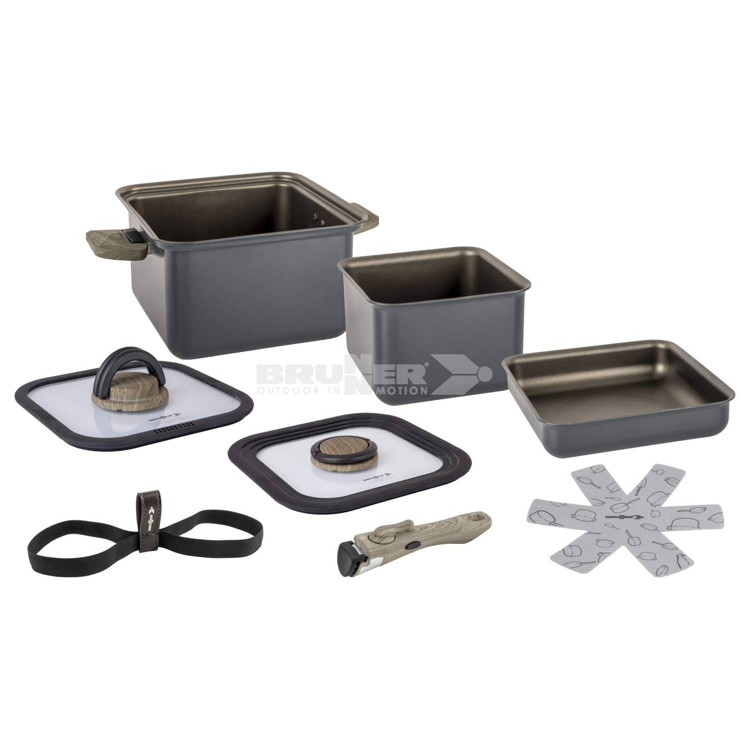 Der Torralta Square ist ein innovatives quadratisches Topfset, das sich perfekt für Wohnmobil- und Bootsliebhaber eignet. Der äußere Topf und die Pfanne messen 20 x 20 cm und verfügen über ein schlankes, stapelbares Design, das Ihren begrenzten Stauraum optimiert, ohne dass Sie sich um feste Griffe kümmern müssen. Diese Töpfe aus hochwertigem recyceltem Aluminium sind sowohl umweltfreundlich als auch langlebig und gewährleisten eine außergewöhnliche Wärmeverteilung für effizientes Kochen. Der Glasdeckel ermöglicht eine einfache Überwachung Ihrer kulinarischen Kreationen. Dieses Topfset ist mit Induktionskochfeldern kompatibel und somit vielseitig für jede Kochumgebung einsetzbar.