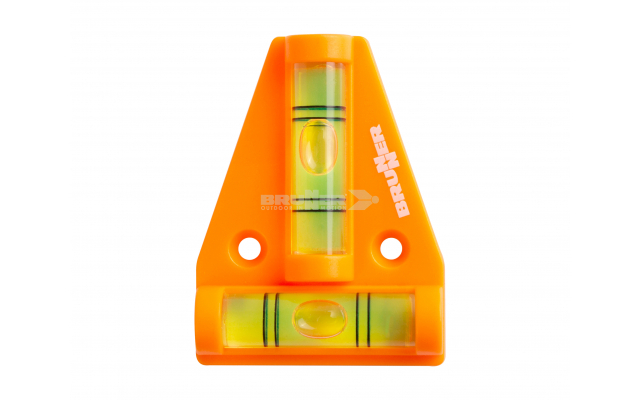 Niveau à bulle bi-directionnel avec bulles perpendiculaires et points d’ancrage.