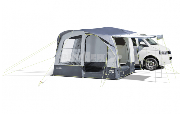 Tente indépendante pour Minibus avec structure pneumatique A.I.R. Tech avec 2 arceaux. Accès direct au véhicule par l'entrée optionnelle dans le tunnel de liaison.