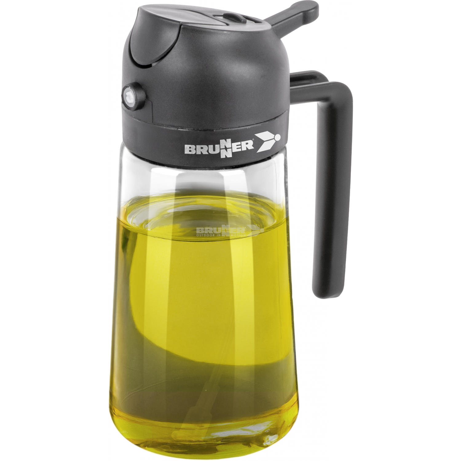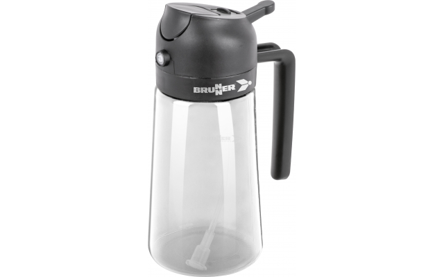 Distributeur d'huile polyvalent, équipé d'un levier de dosage pratique, d'un joint étanche et d'un couvercle en plastique avec dispositif de fermeture et de dosage. Fabriqué en Tritan robuste et muni d'un anneau antidérapant, ce distributeur est un choix pratique pour une utilisation mobile.