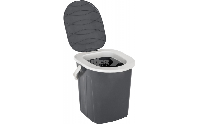 Toilette à seau portable avec siège, couvercle et poignée de transport. Construction en plastique robuste et stable. Compact et facile à transporter, il représente une solution pratique et commode pour l’extérieur et le camping.