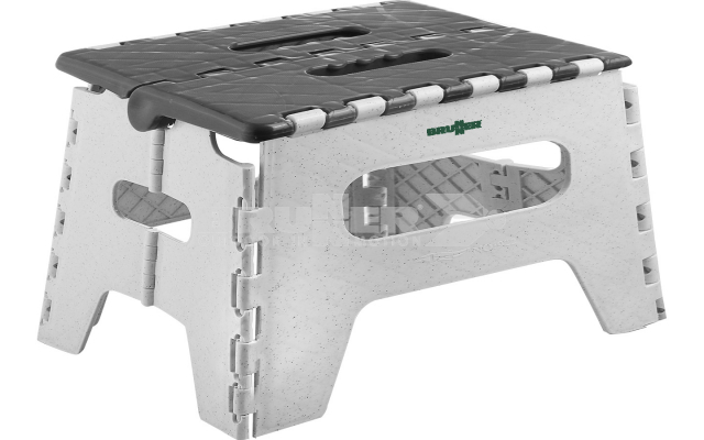 Pratique marchepied pliable pour Outdoor et usage ménager en plastique. Surface antidérapante et petits pieds en gomme.