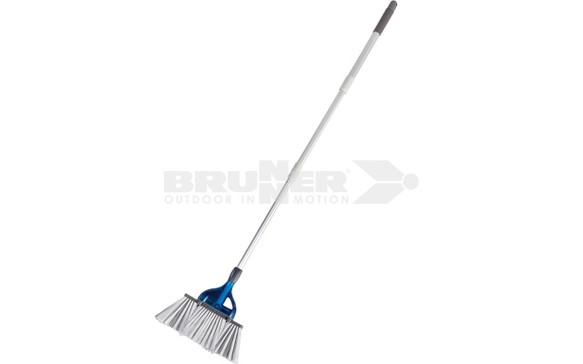 Balai spécial pour camping avec mécanisme génial d’ouverture qui double la largeur utile de la brosse. Fourni avec ramassette.