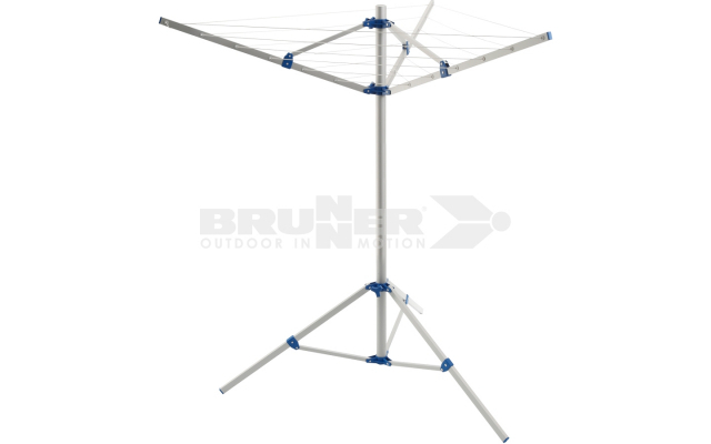 Etendage pliant en aluminium anodisé. Longueur de la corde: 14 mètres.