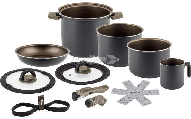 La batterie de casseroles empilables Torralta est la solution idéale pour les propriétaires de camping-cars et de bateaux qui recherchent des ustensiles de cuisine efficaces. Cette collection a été conçue pour les cuisinières compactes et offre un rapport optimal entre la surface et le volume pour traiter de plus grandes quantités d'aliments. Grâce à la conception spéciale des bords, les poêles incluses reposent en toute sécurité sans risque de glisser. Toutes les casseroles et poêles sont fabriquées à partir de canettes d'aluminium recyclées. La casserole extérieure est dotée de poignées rabattables pour un rangement compact et peu encombrant. Cet ensemble polyvalent est compatible avec tous les types de plaques de cuisson, y compris l'induction. Une poignée amovible pour les casseroles intérieures est incluse.