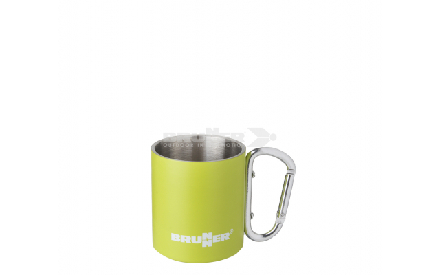 Tasse thermos à double paroi en acier inox. Haute isolation. Manche à mousqueton très pratique.