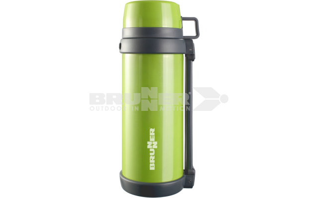 Bouteille thermos avec double paroi en acier inoxydable alimentaire 18/8 avec un grand bouchon à vis et coupe / couvercle intégré. Isolation très efficace combiné avec une haute résistance à la rupture. Avec pratique poignée extractible à l’occurrence. Insipide. 100% recyclable. 100% sans BPA.