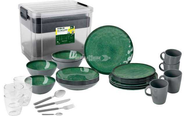 Avec l‘emploi d‘une gomme antislip intégrée sur le fond de la vaisselle, cela donne une majeure stabilité et on peut supprimer les effets de la glisse et de la chutte de la vaisselle qui se traduisent bien souvent par des bruits fastidieux pendant le voyage