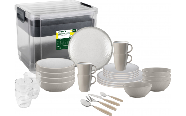 Mediante l’utilizzo di una guarnizione in gomma integrata nel fondo delle stoviglie viene data maggiore stabilità. Infatti vengono quasi azzerate le possibilità di scivolamento e caduta e inoltre viene notevolmente ridotto il fastidioso tintinnio nel caso di spostamenti