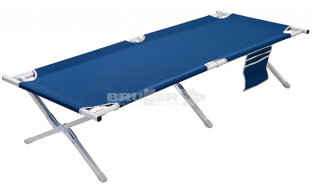 Lettino da campo con struttura pieghevole e smontabile in alluminio.