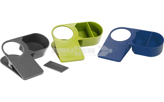 Drinkmaster - il portabevande intelligente per il campeggio, il camper, il caravan, la nautica ed il giardino. Viene agganciato lateralmente al tavolo e garantisce un appoggio sicuro a bicchieri, lattine e svariati piccoli accessori.