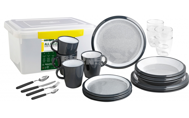 36 delige melamineset met box. Alle onderdelen zijn voorzien van een antislip ring aan de onderzijde.