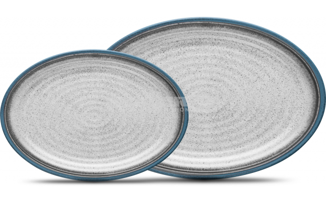 Ovale serveer- en charcuterieplaat set (2 stuks) gemaakt van Stonetouch melamine. Met anti-slip ring. Stapelbaar om ruimte te besparen. Verpakt in een mooie geschenkdoos.